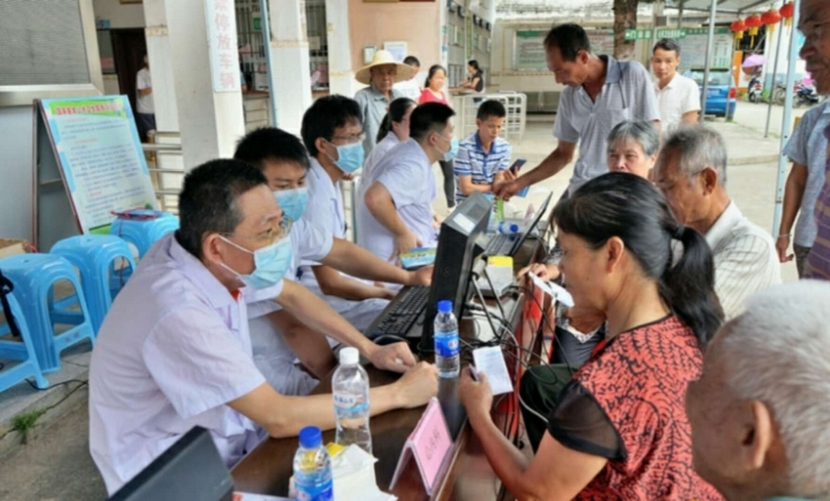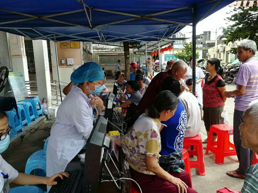 图二:合浦县公馆镇群众正在排队等待健康检查