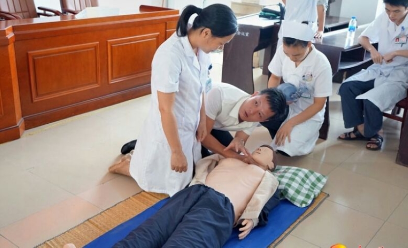随后进行的医疗技能培训中,市人民医院急诊科和120专家对医院各科室人员进行了现场急救示范,演示心肺复苏抢救过程,详细的讲解心肺复苏术的最新标准和操作方法,急救要领和电除颤仪的应用等等。为增强培训效果,专家们还让参加培训的医护人员进行现场心肺复苏急救演习,并对他们进行现场指导,这种理论结合实践的培训方法让参加培训活动的医护人员受益匪浅。