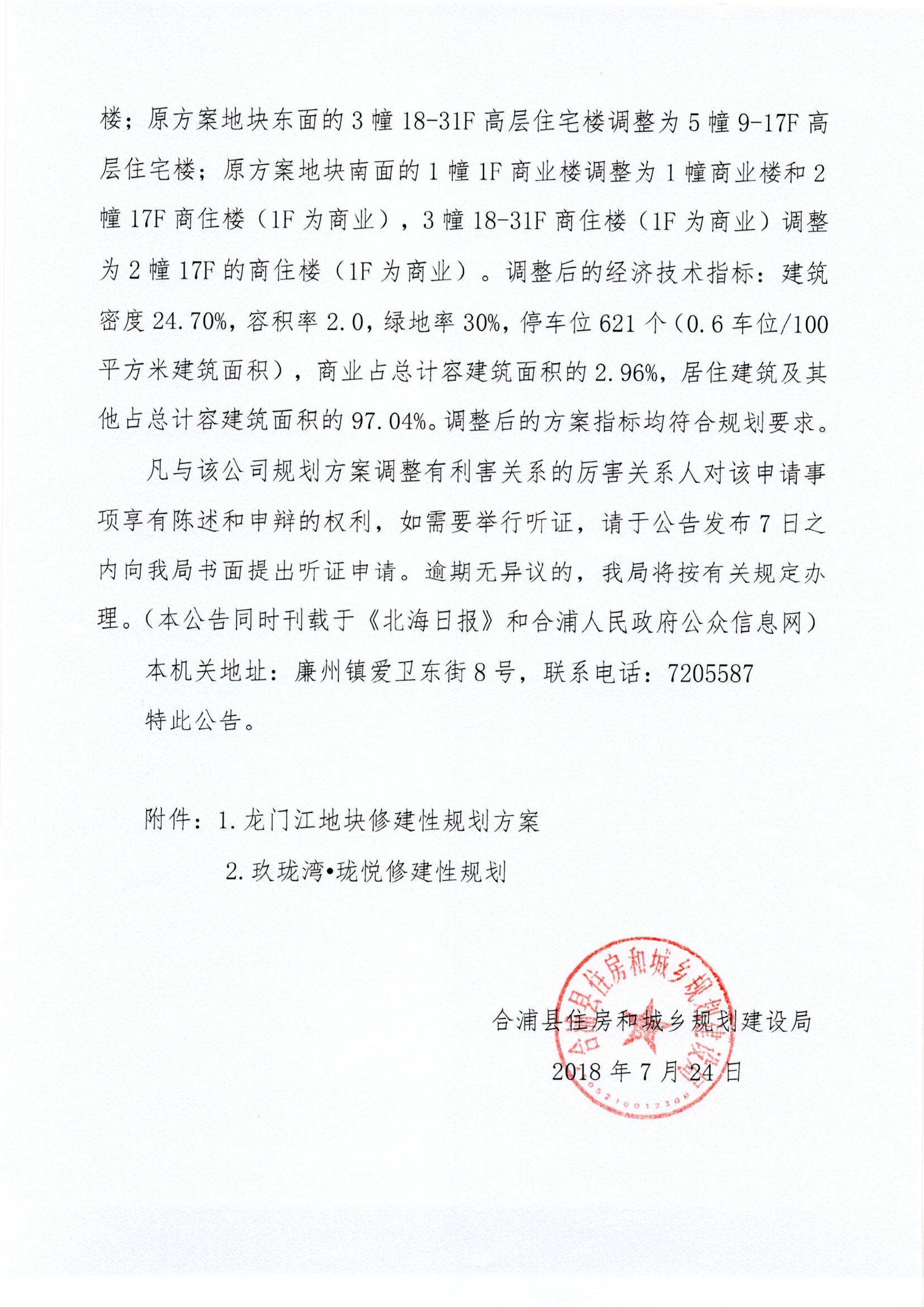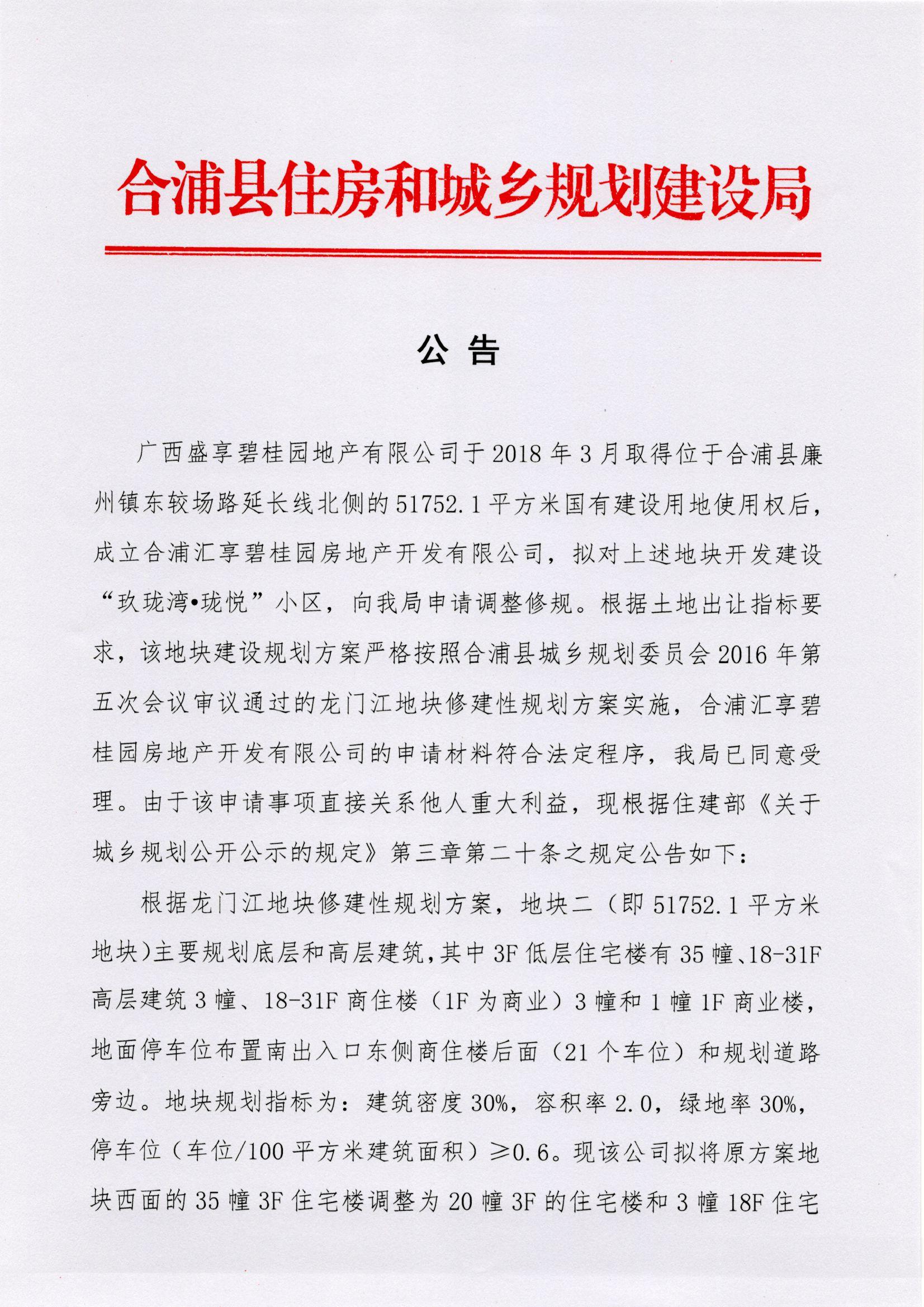 公告(广西盛享碧桂园地产有限公司调整“玖珑湾·珑悦”小区修规)